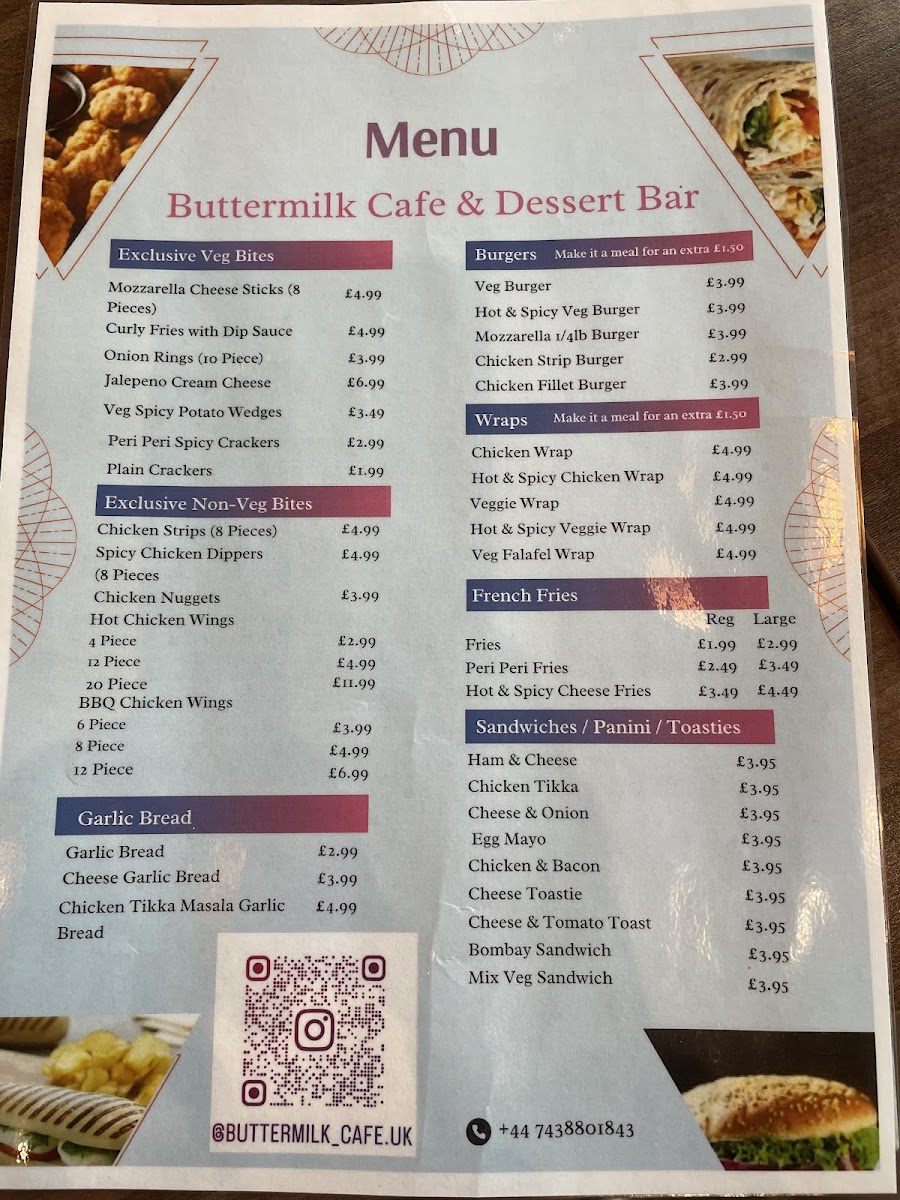 Whether you’re stopping by for a quick coffee, a hearty snack, or a decadent dessert, Buttermilk Cafe & Desserts Bar promises a delightful experience that will keep you coming back for more. With its affordable prices and friendly service, this charming cafe is truly a gem in Gerrards Cross. Don’t miss out on this local treasure!